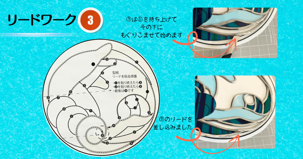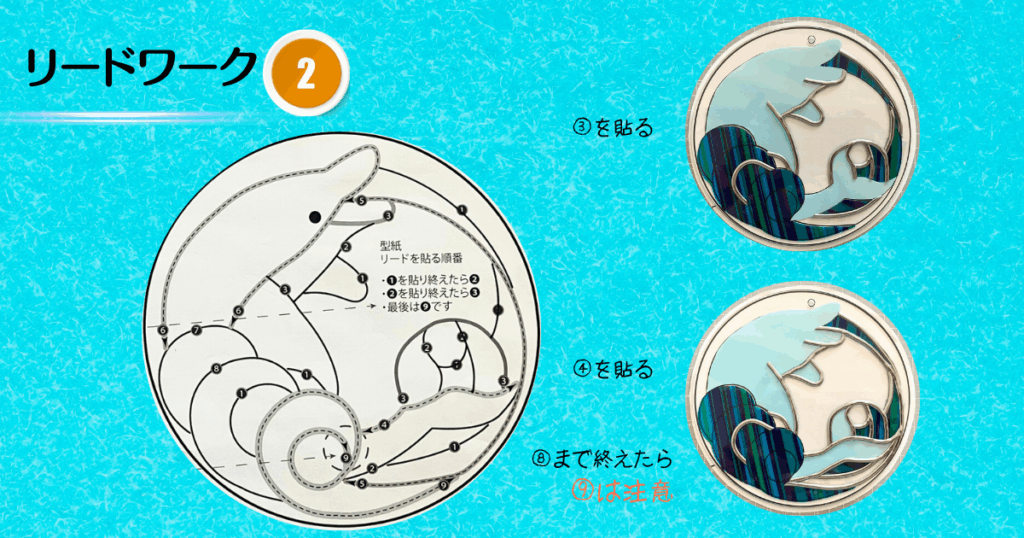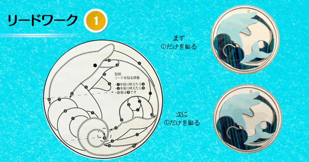 ここからがフィルムで作るステンドグラスの楽しいところです。リードを貼ることでぐっと作品らしくなるので、皆さん夢中になる場面です♪